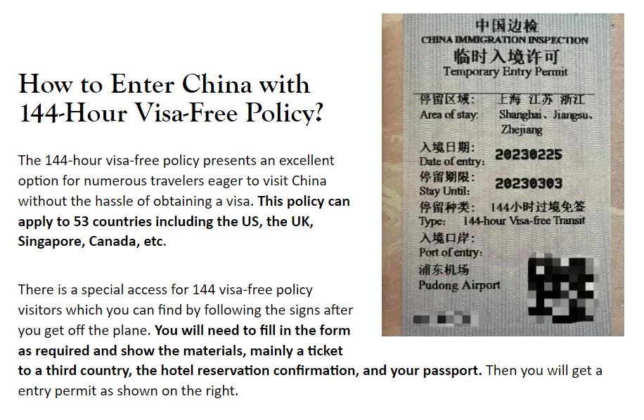 from a Jun 21, 2023 article, you need hotel reservations to get 144 Transit Without Visa . See the article for more details.
